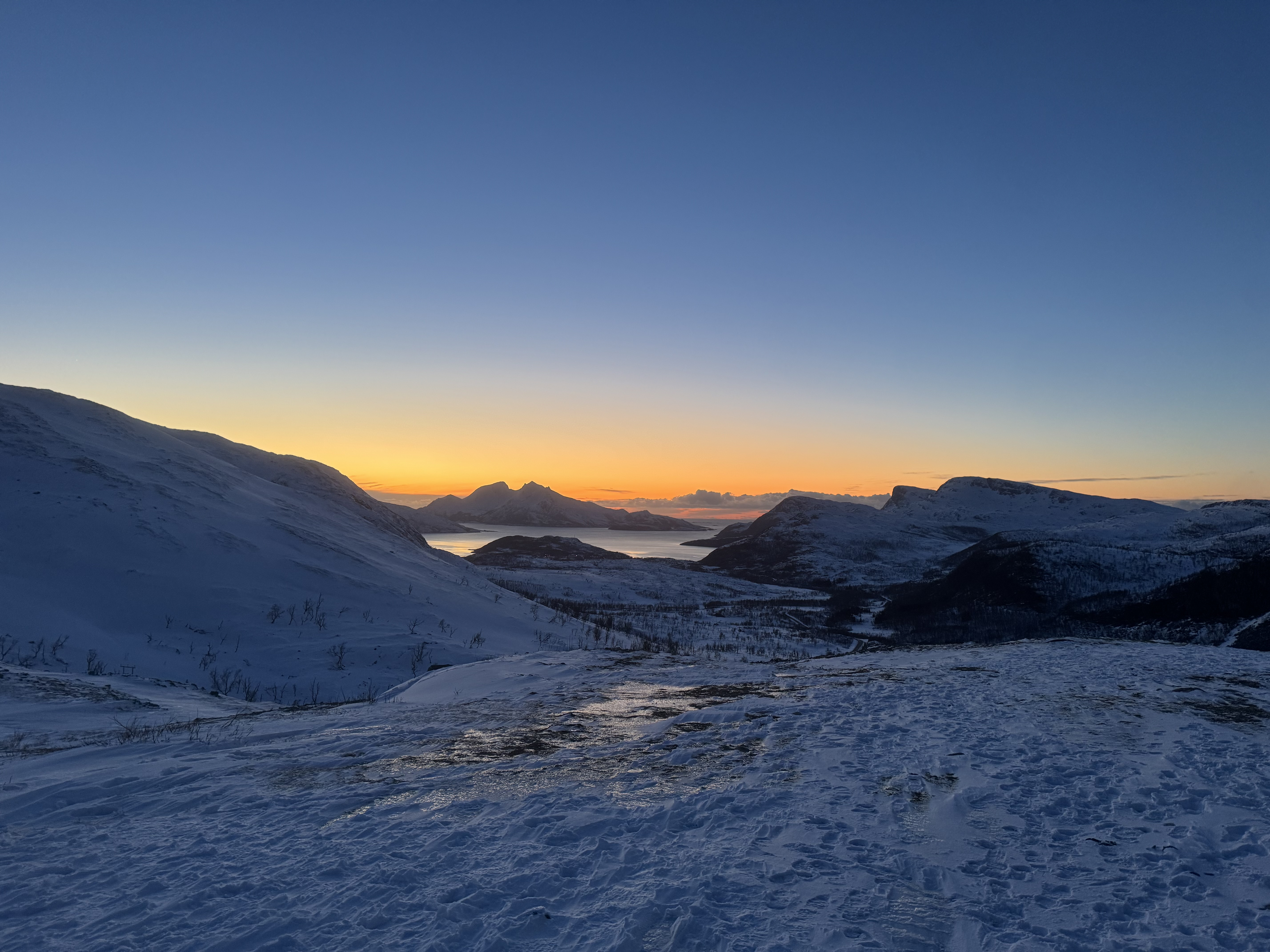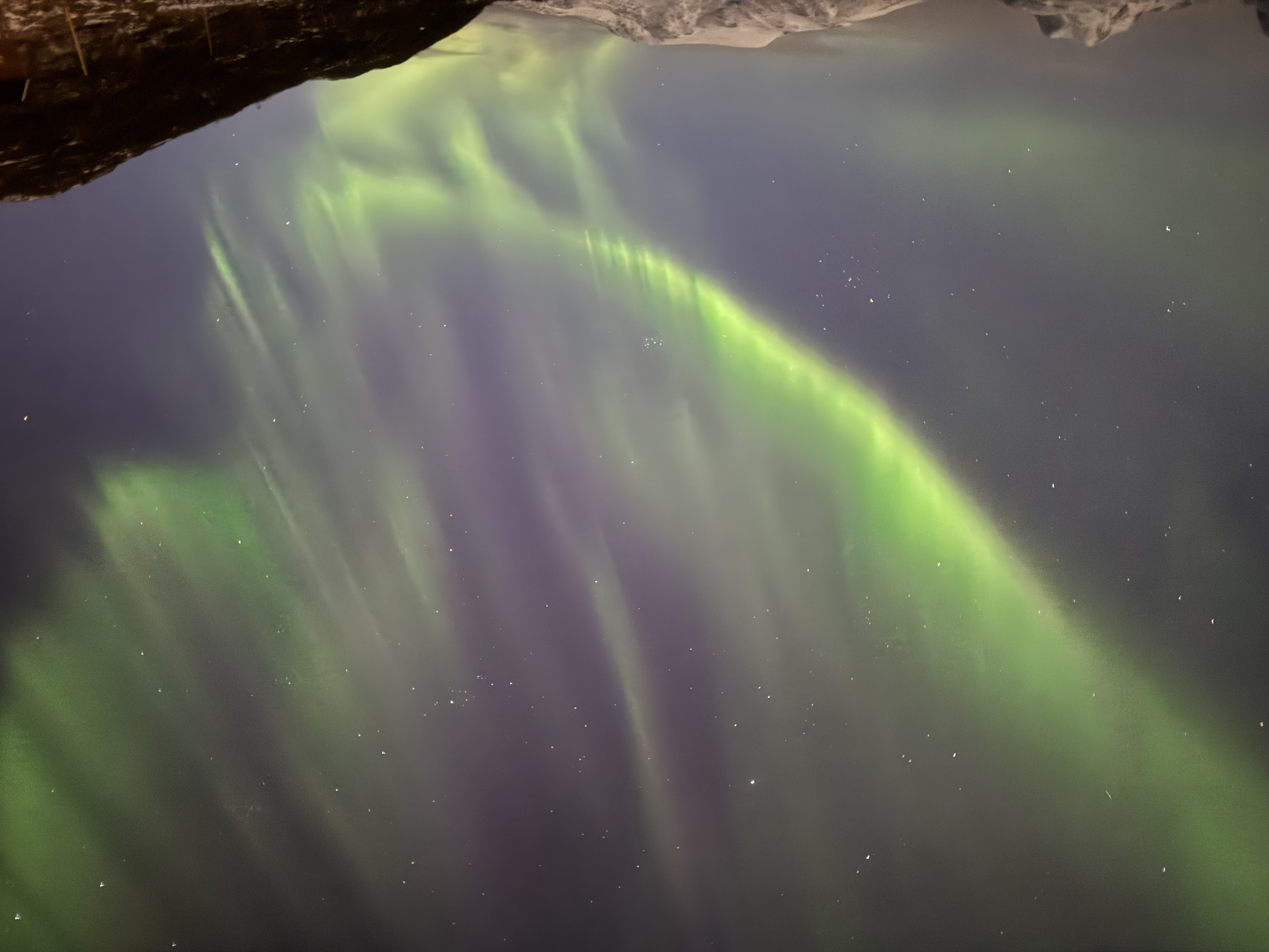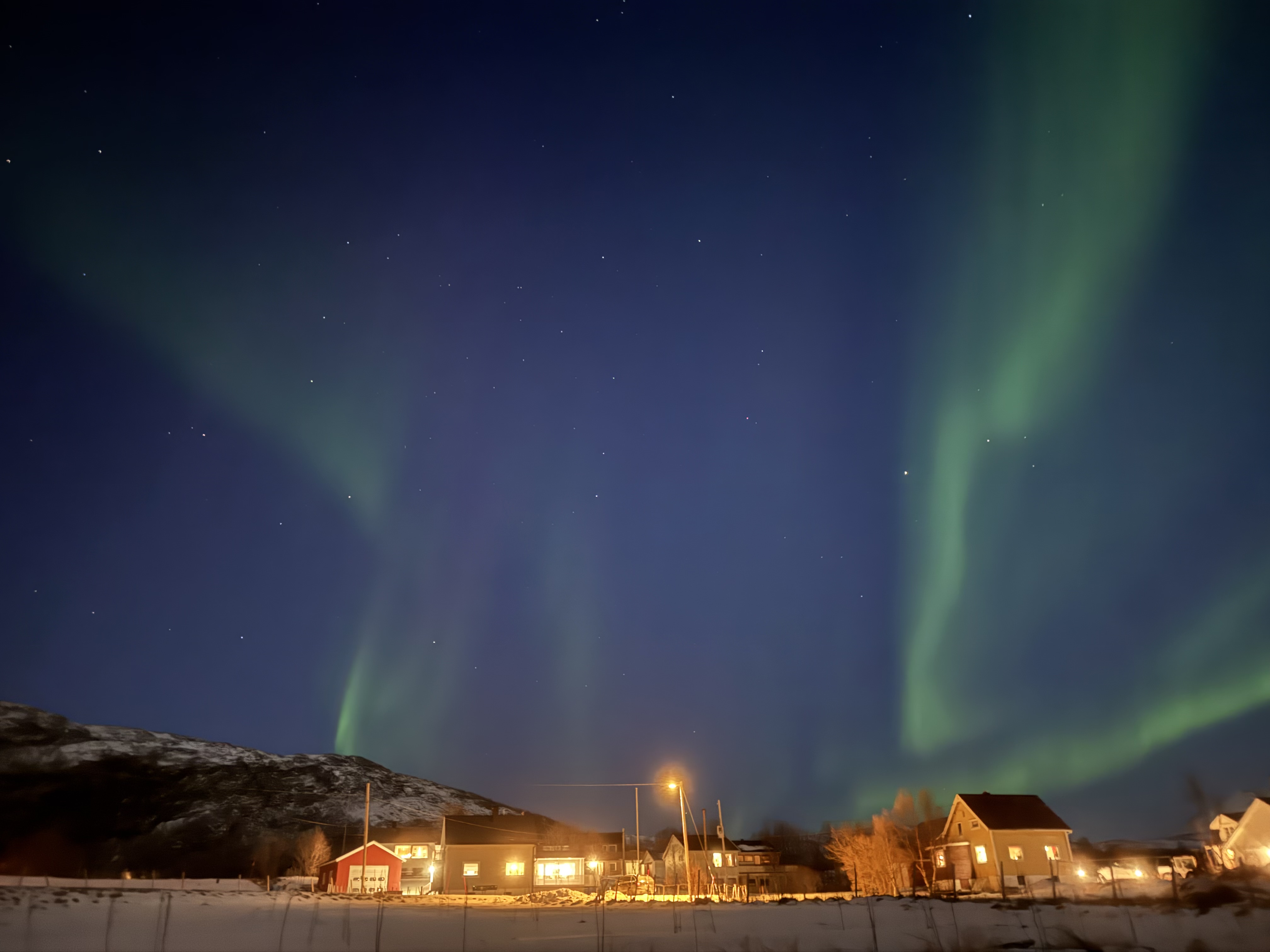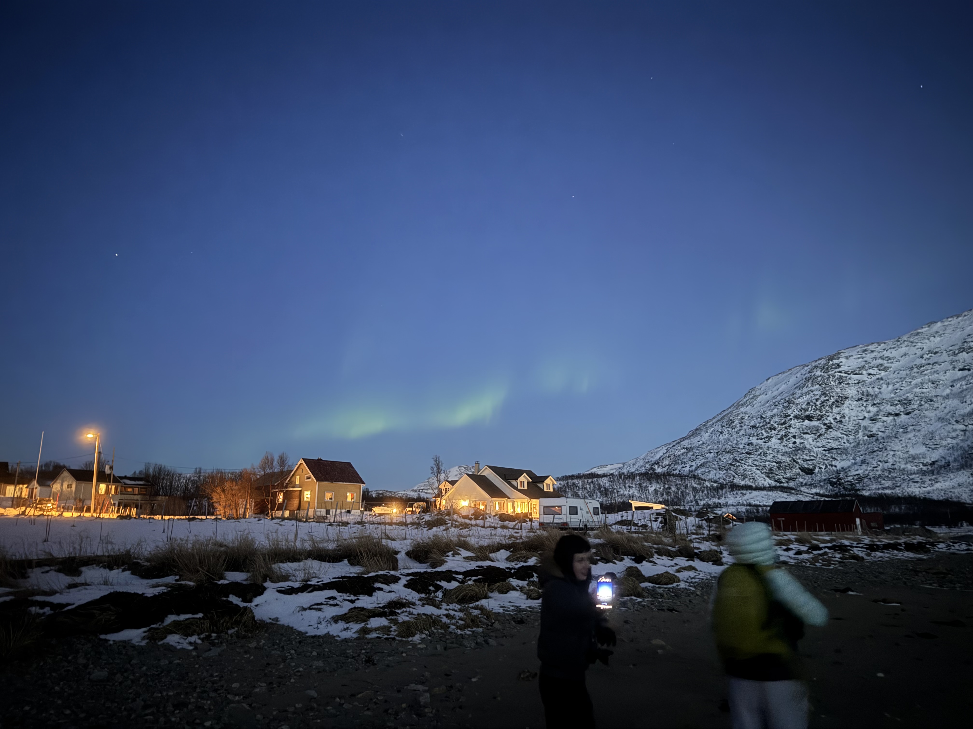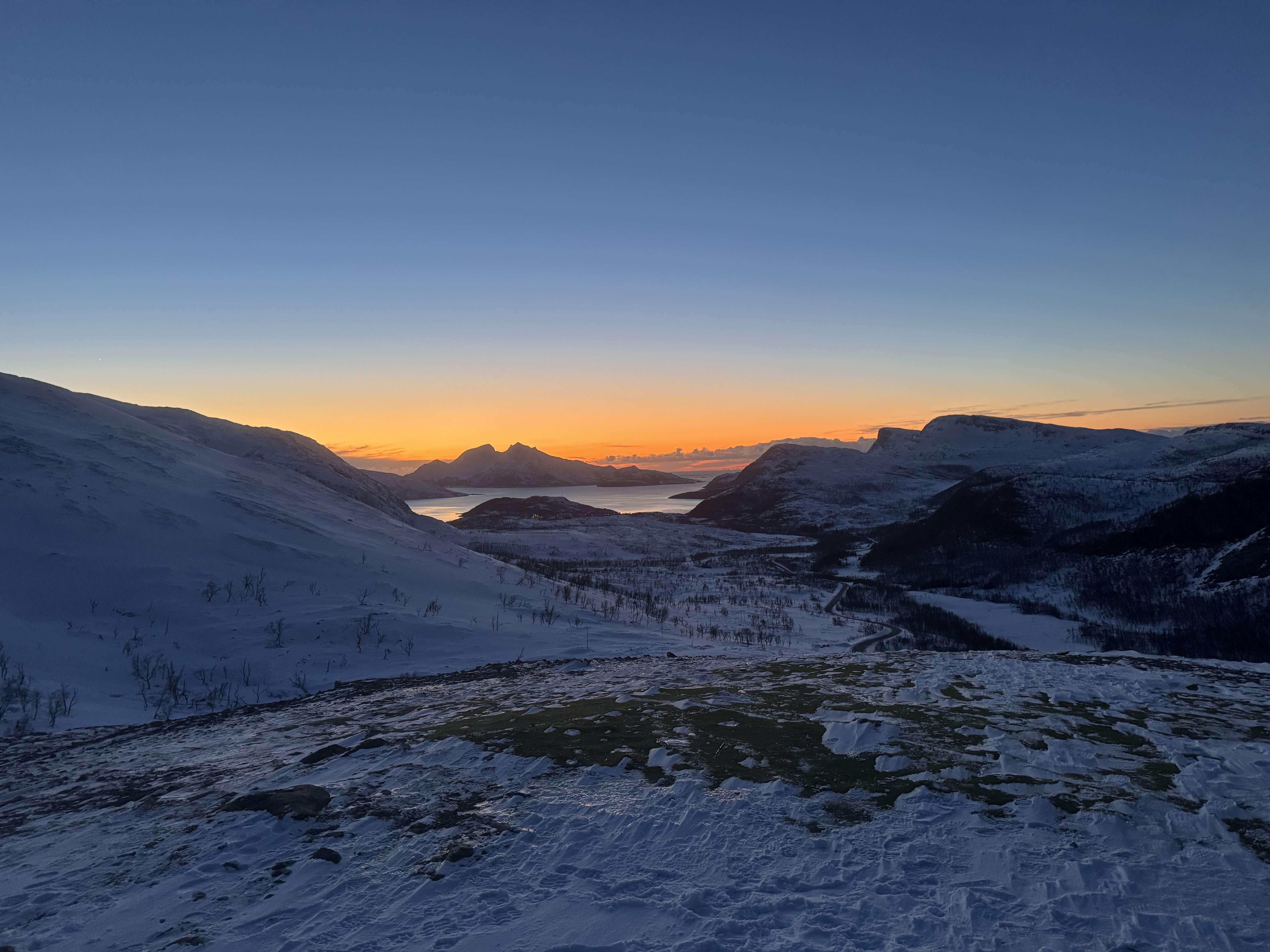 - Incredible evening aurora trip (starting out with a vue panoramique at Skulsfjord while the sun set, then the best display at Lyfjord); thanks Sun, the lights were literally even visible while the sun was up