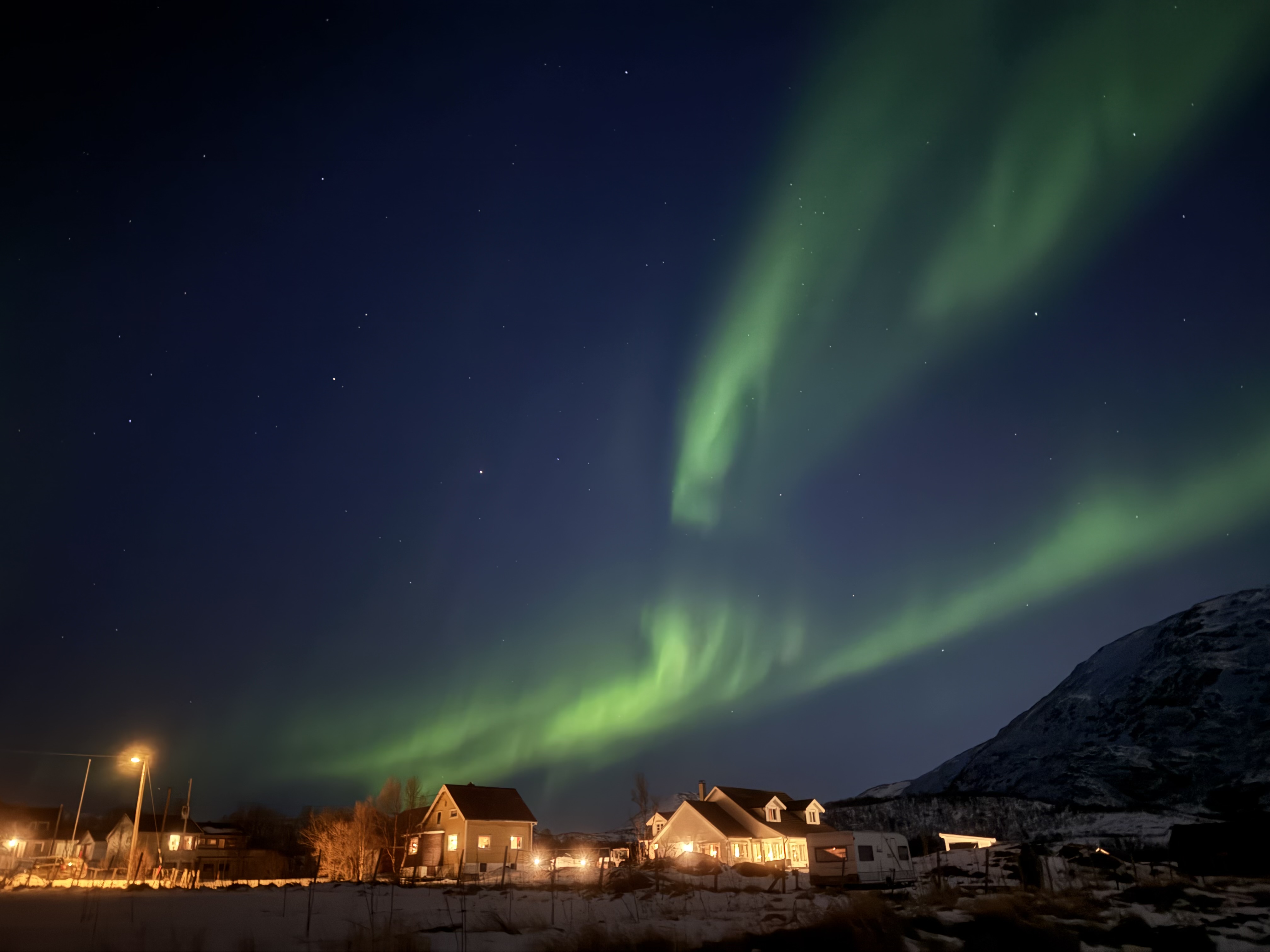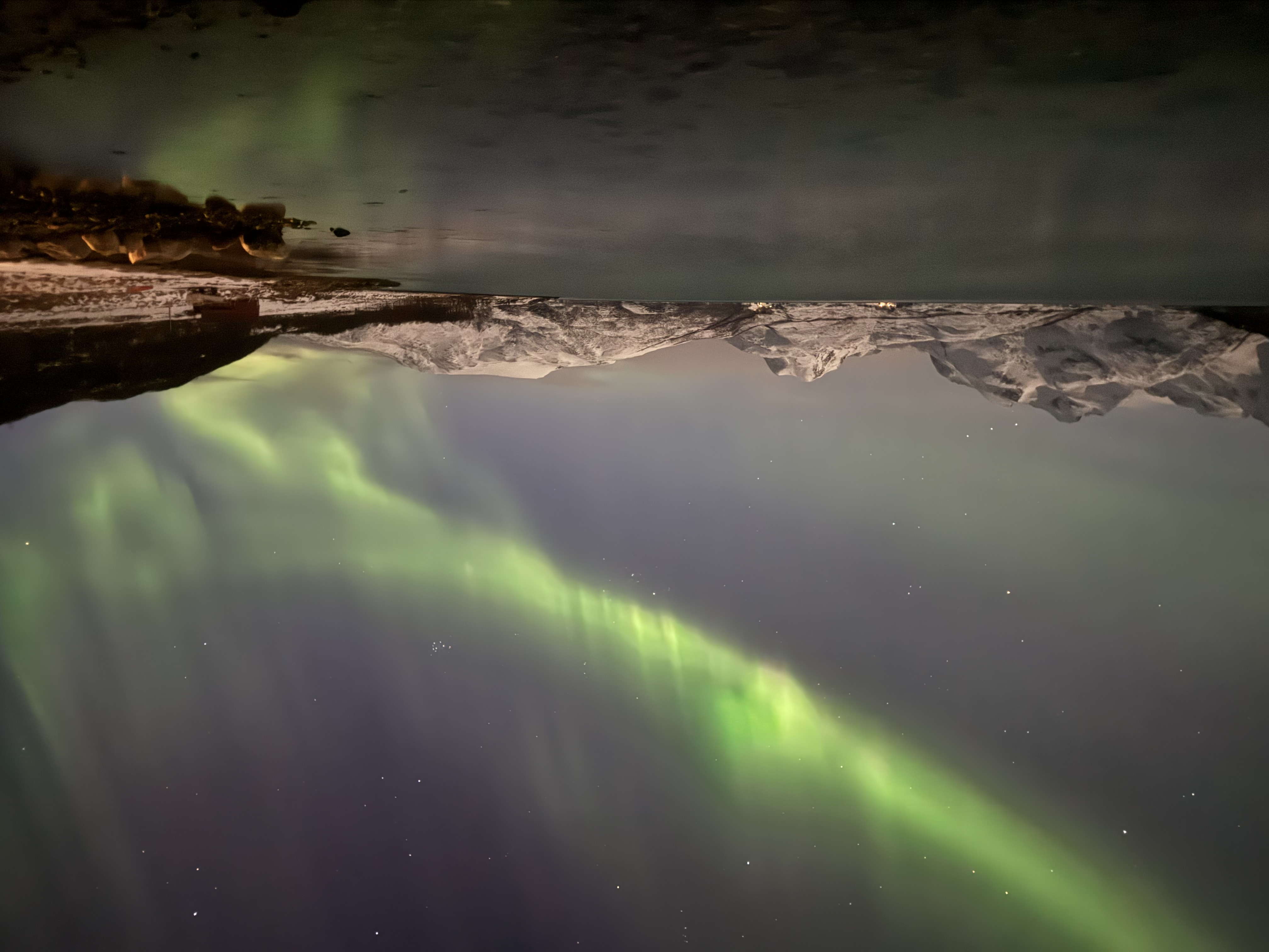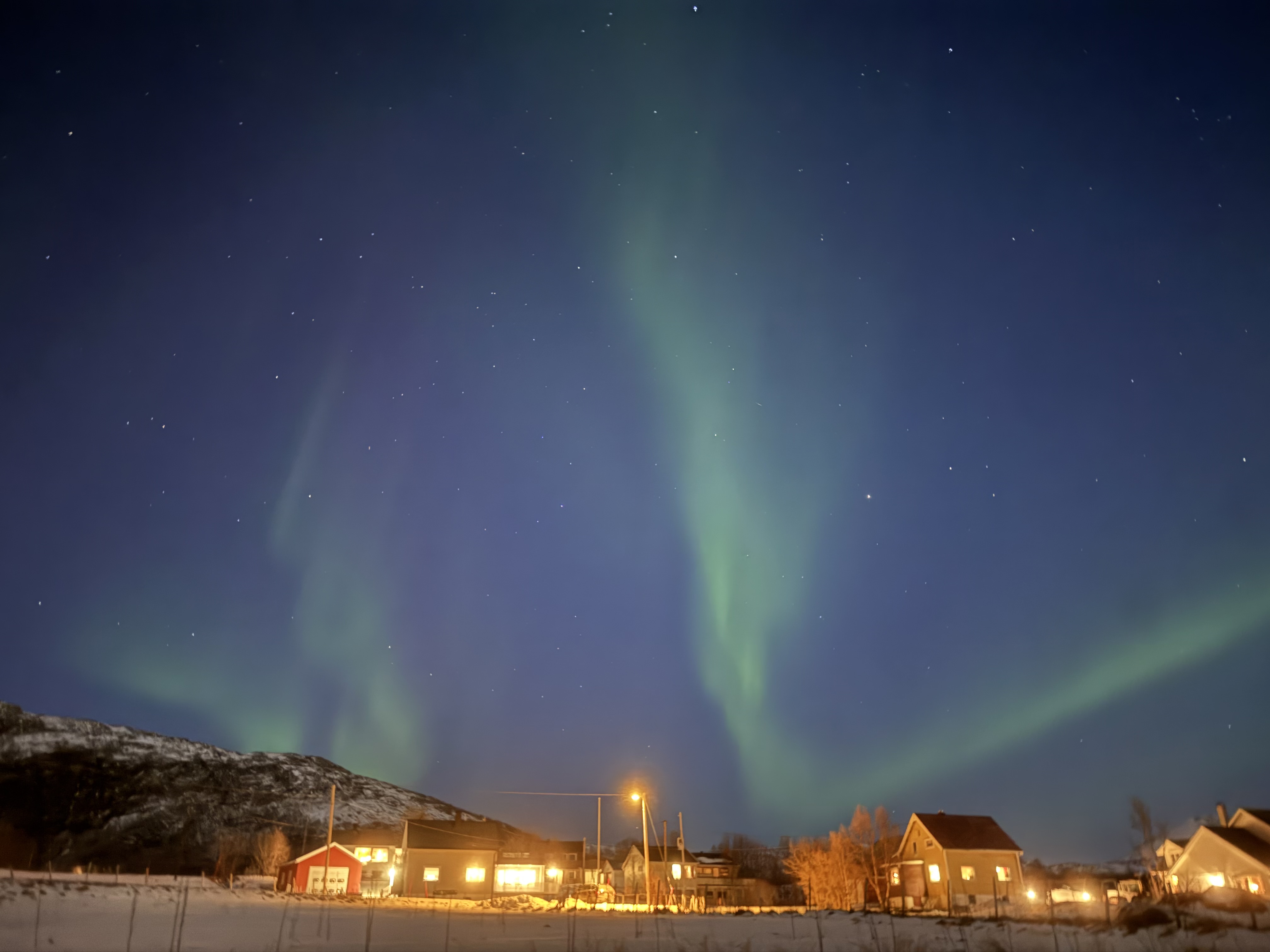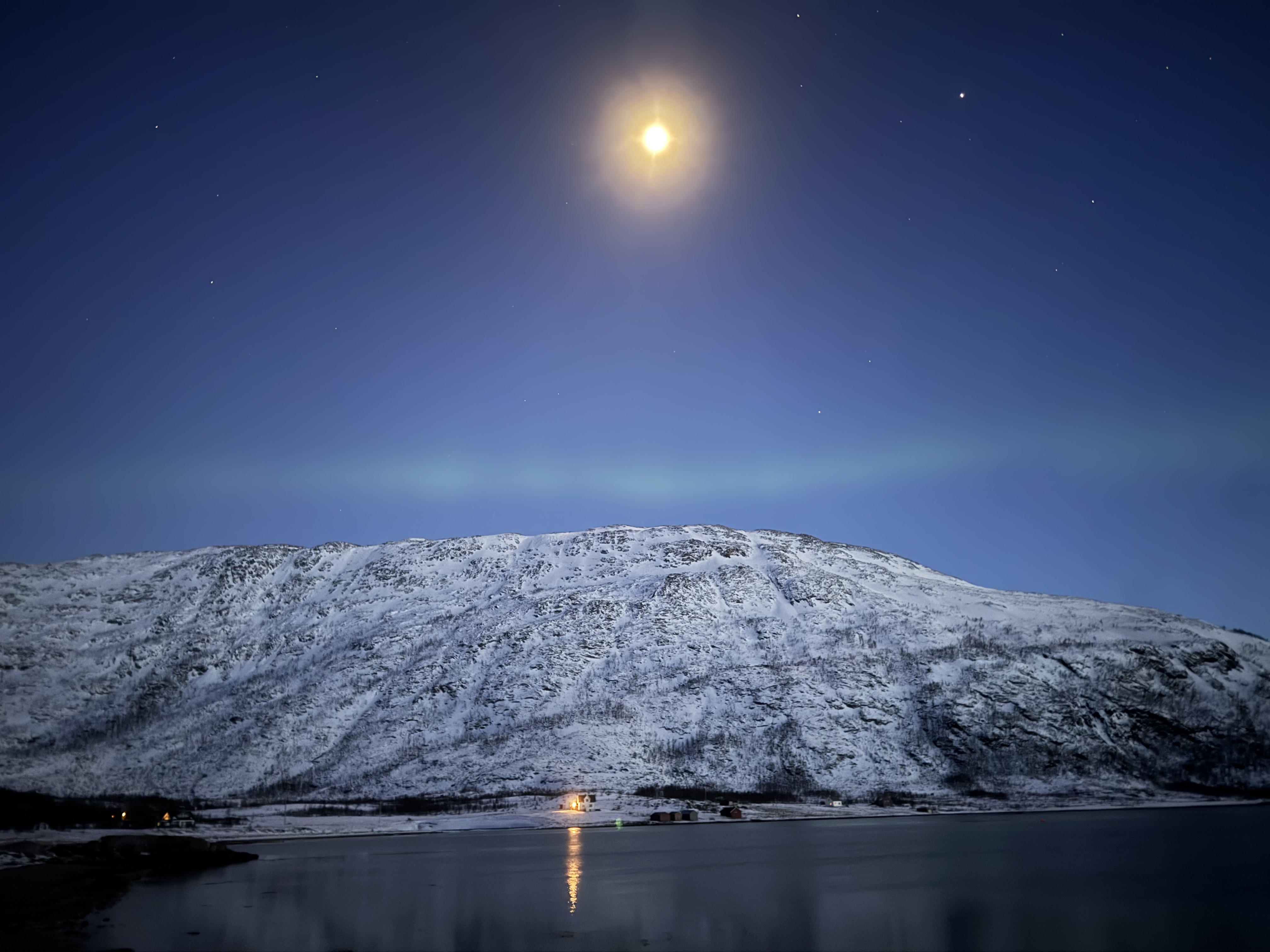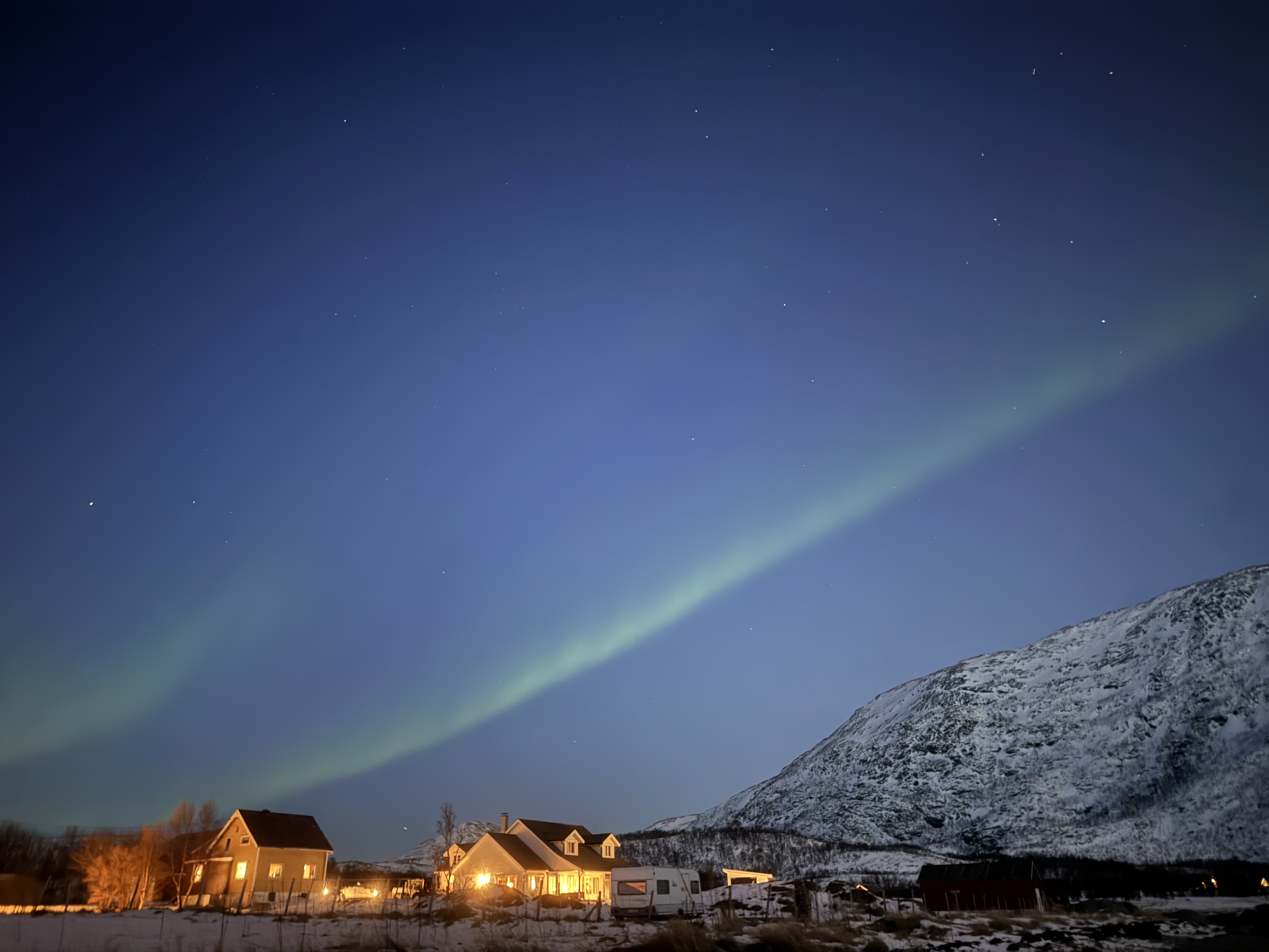 - Incredible evening aurora trip (starting out with a vue panoramique at Skulsfjord while the sun set, then the best display at Lyfjord); thanks Sun, the lights were literally even visible while the sun was up