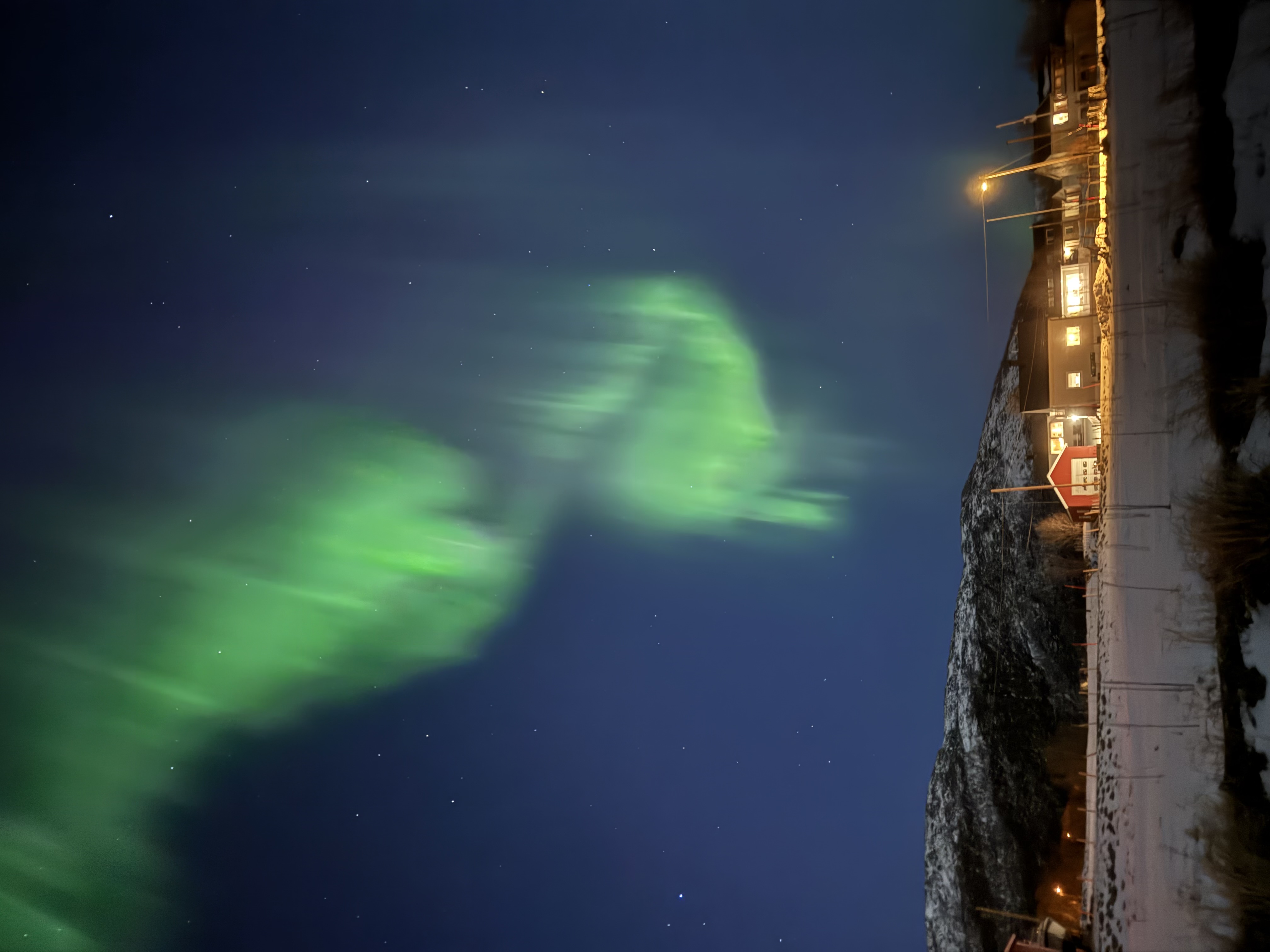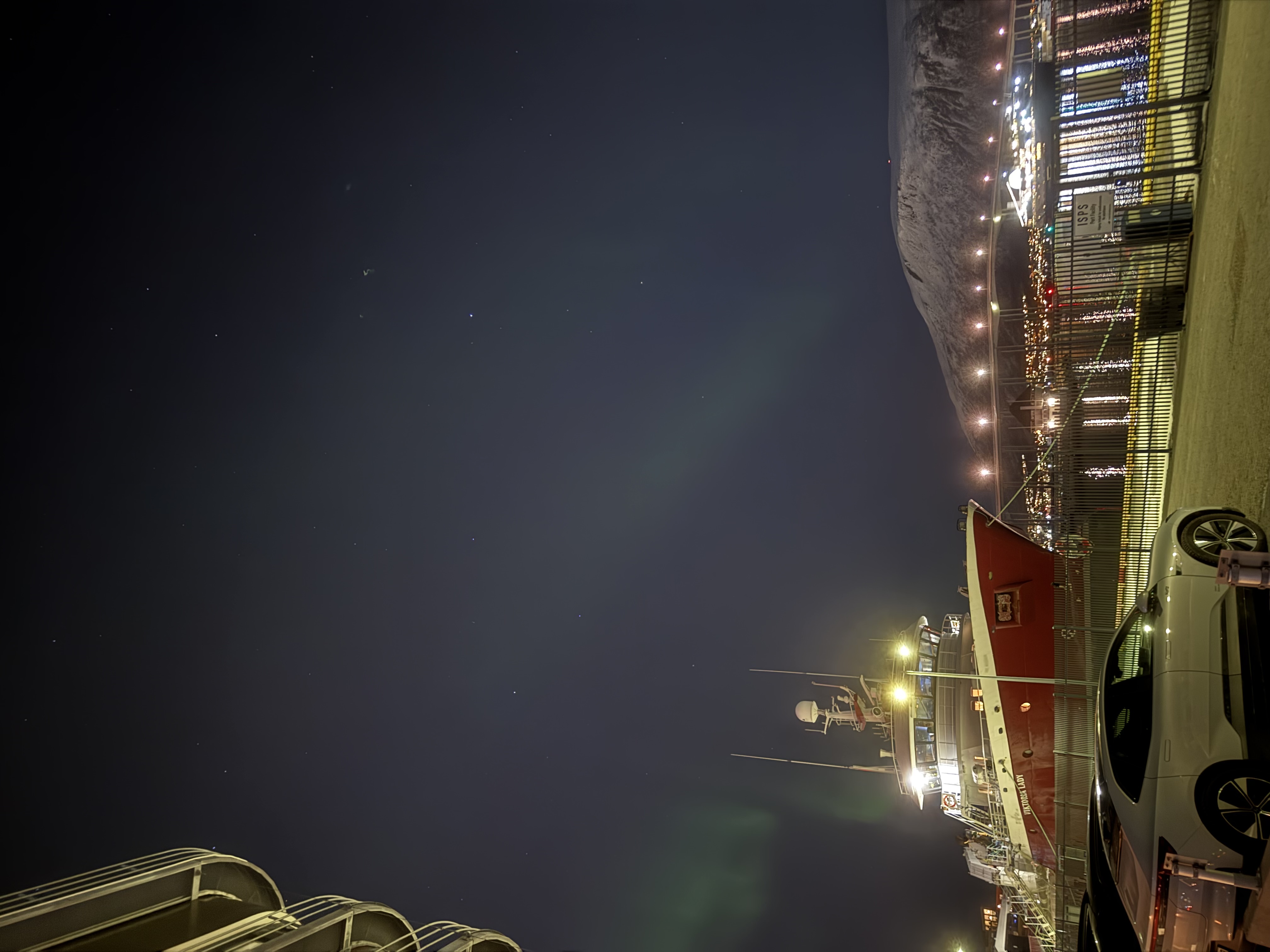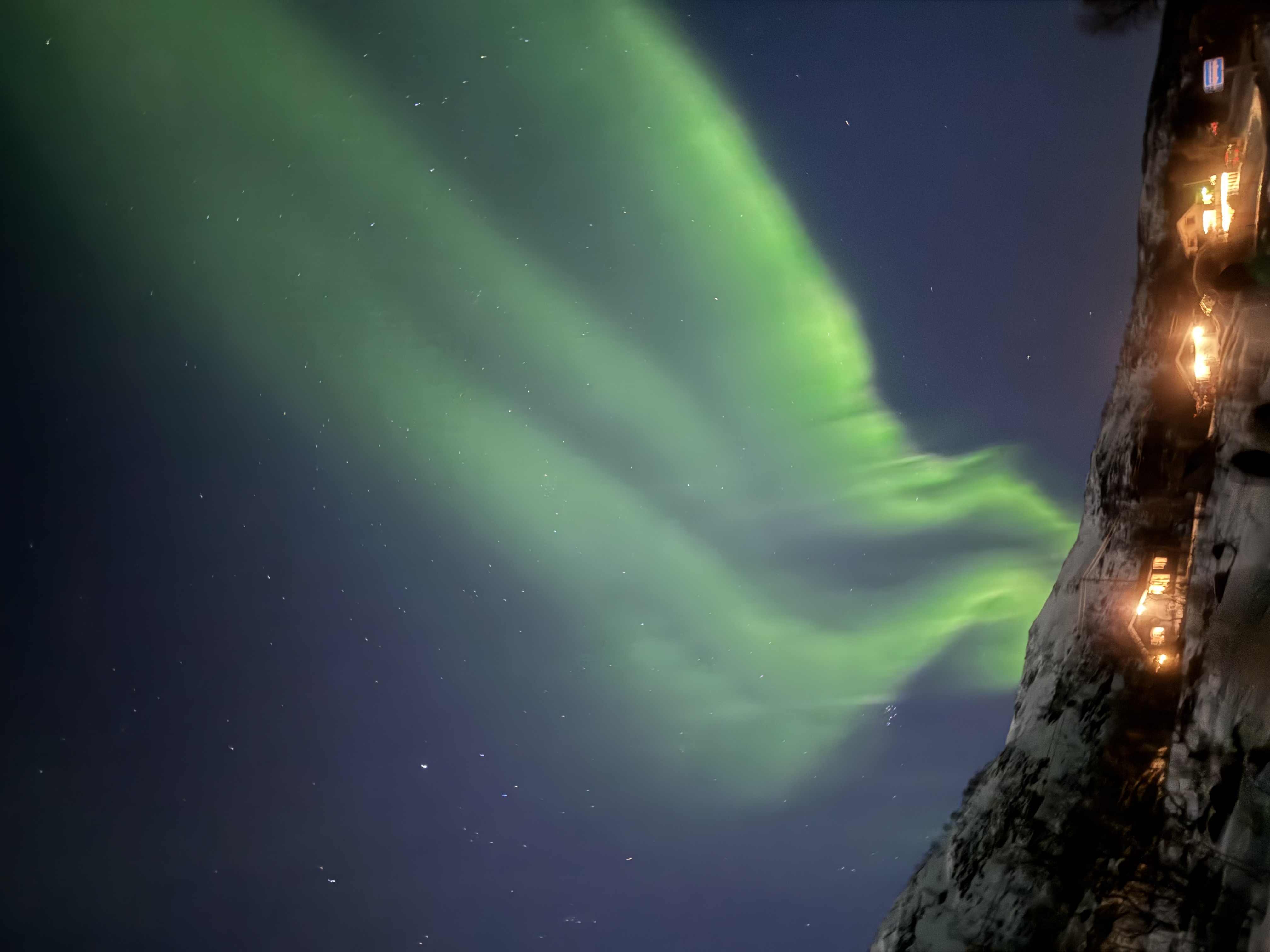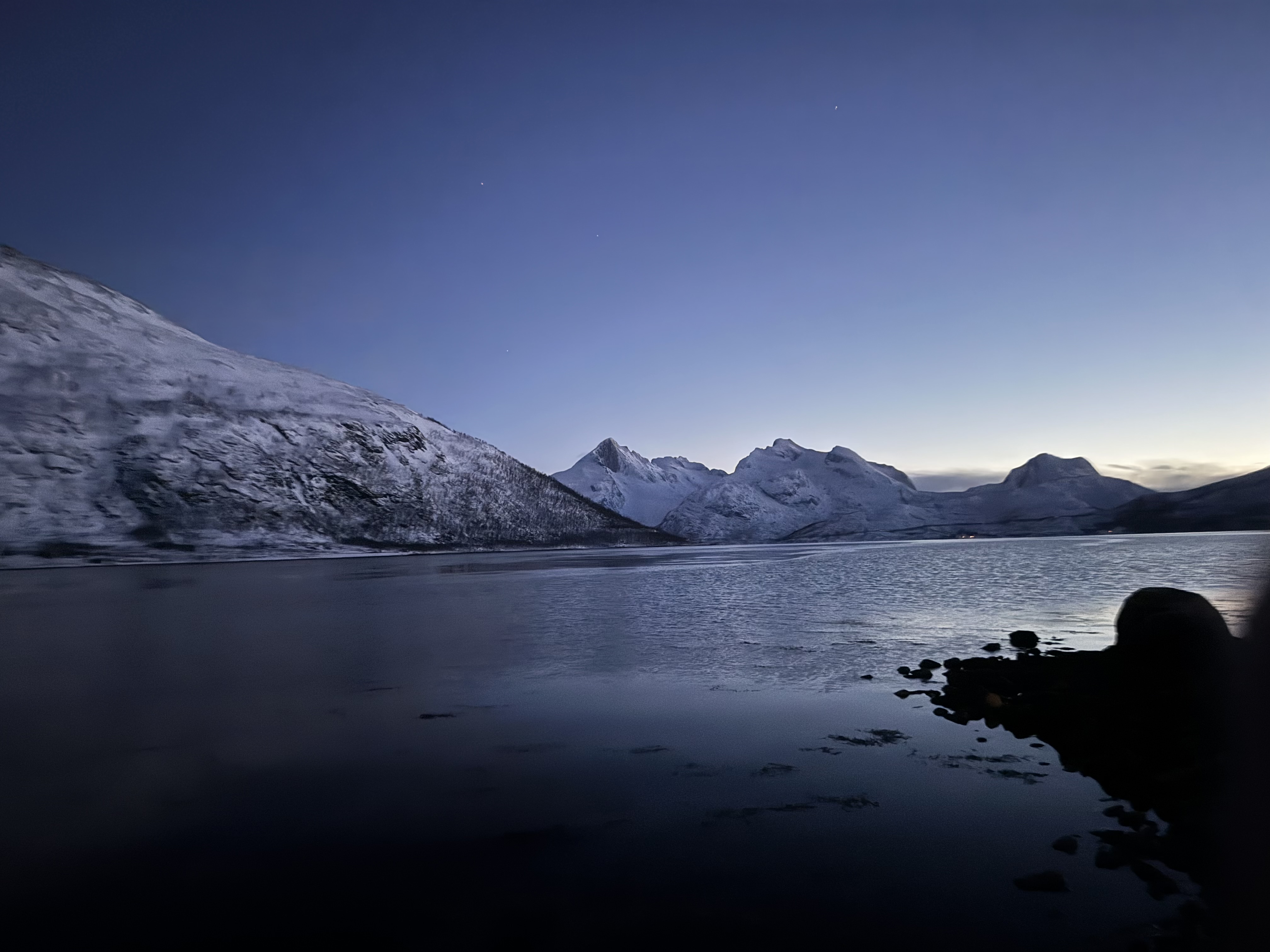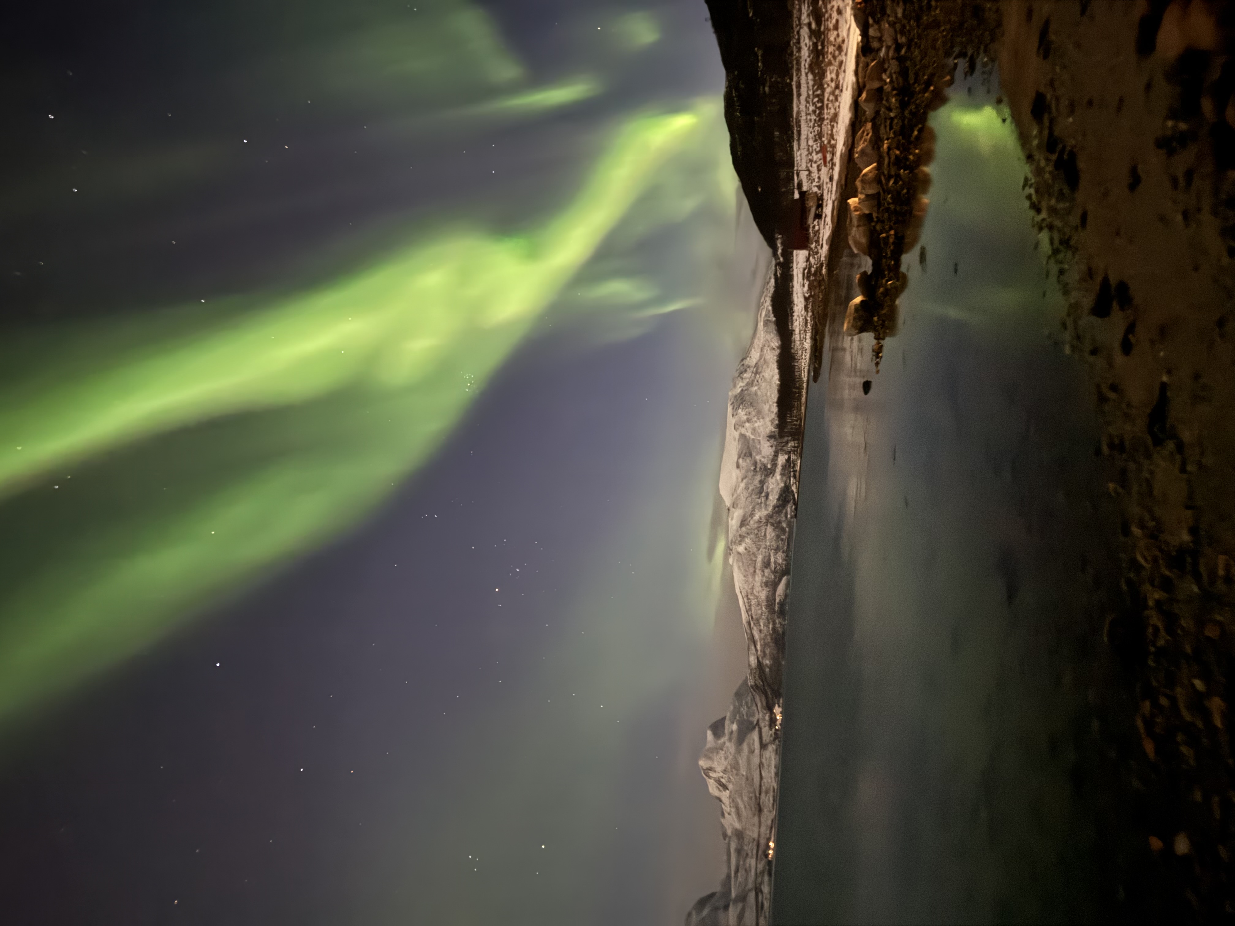 - Incredible evening aurora trip (starting out with a vue panoramique at Skulsfjord while the sun set, then the best display at Lyfjord); thanks Sun, the lights were literally even visible while the sun was up