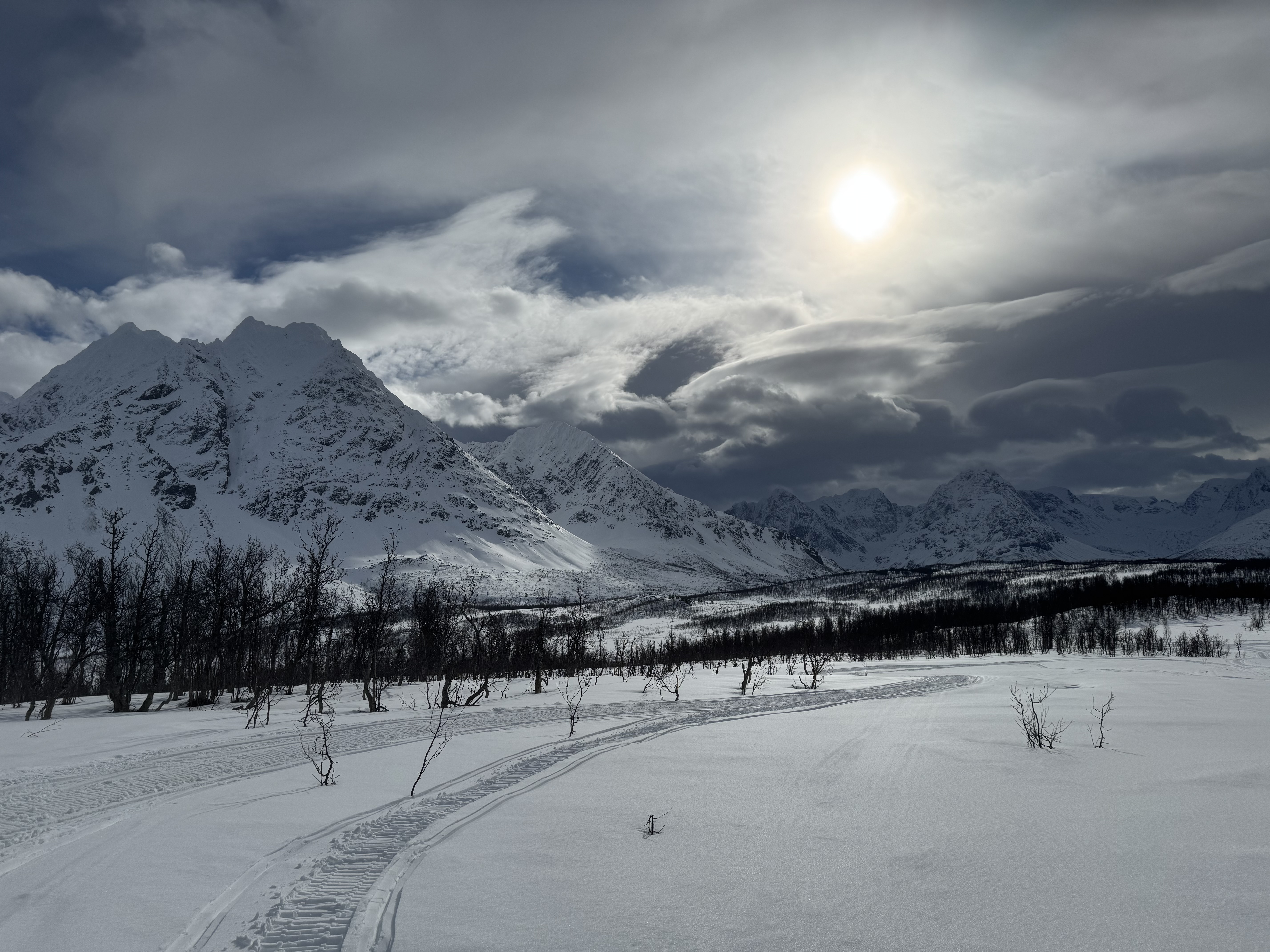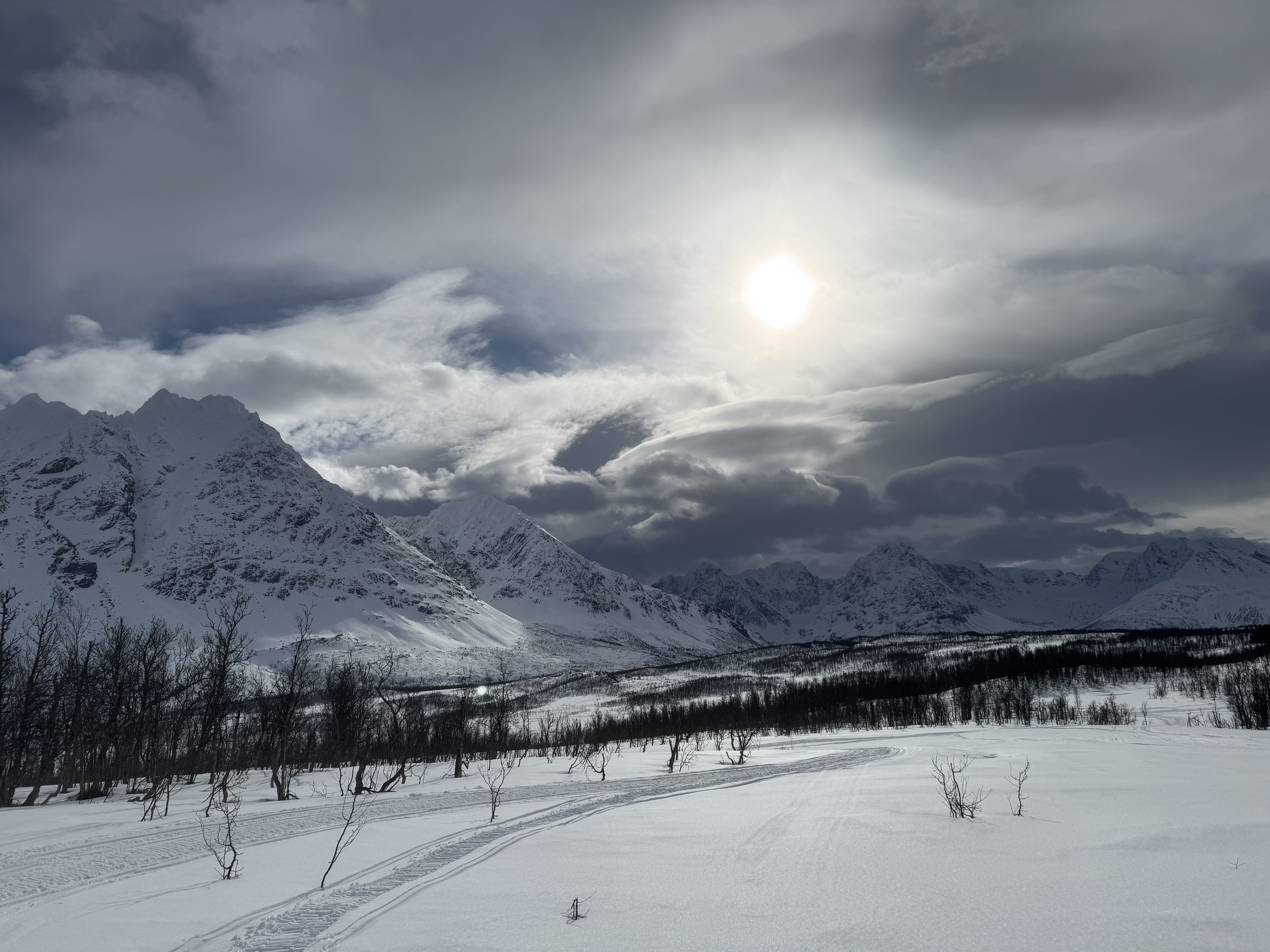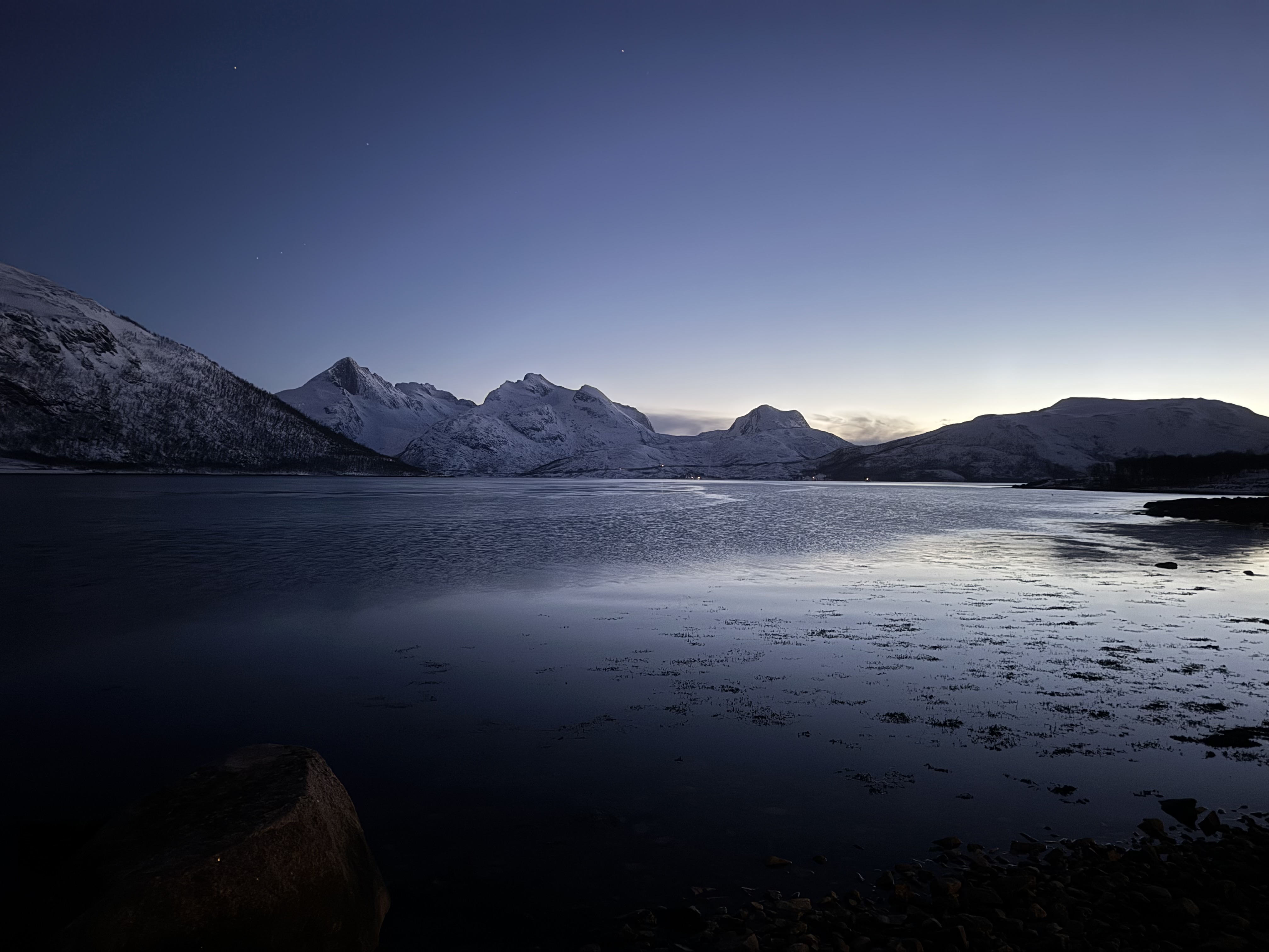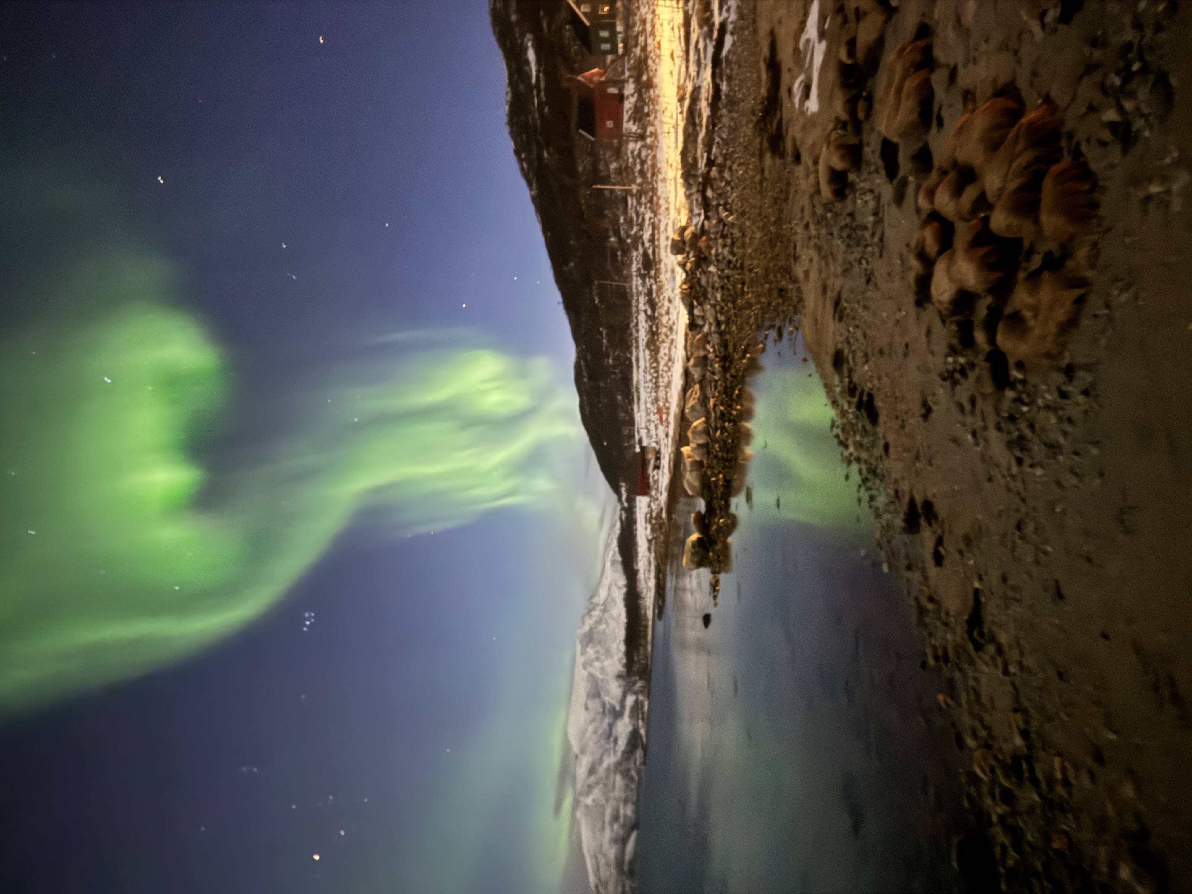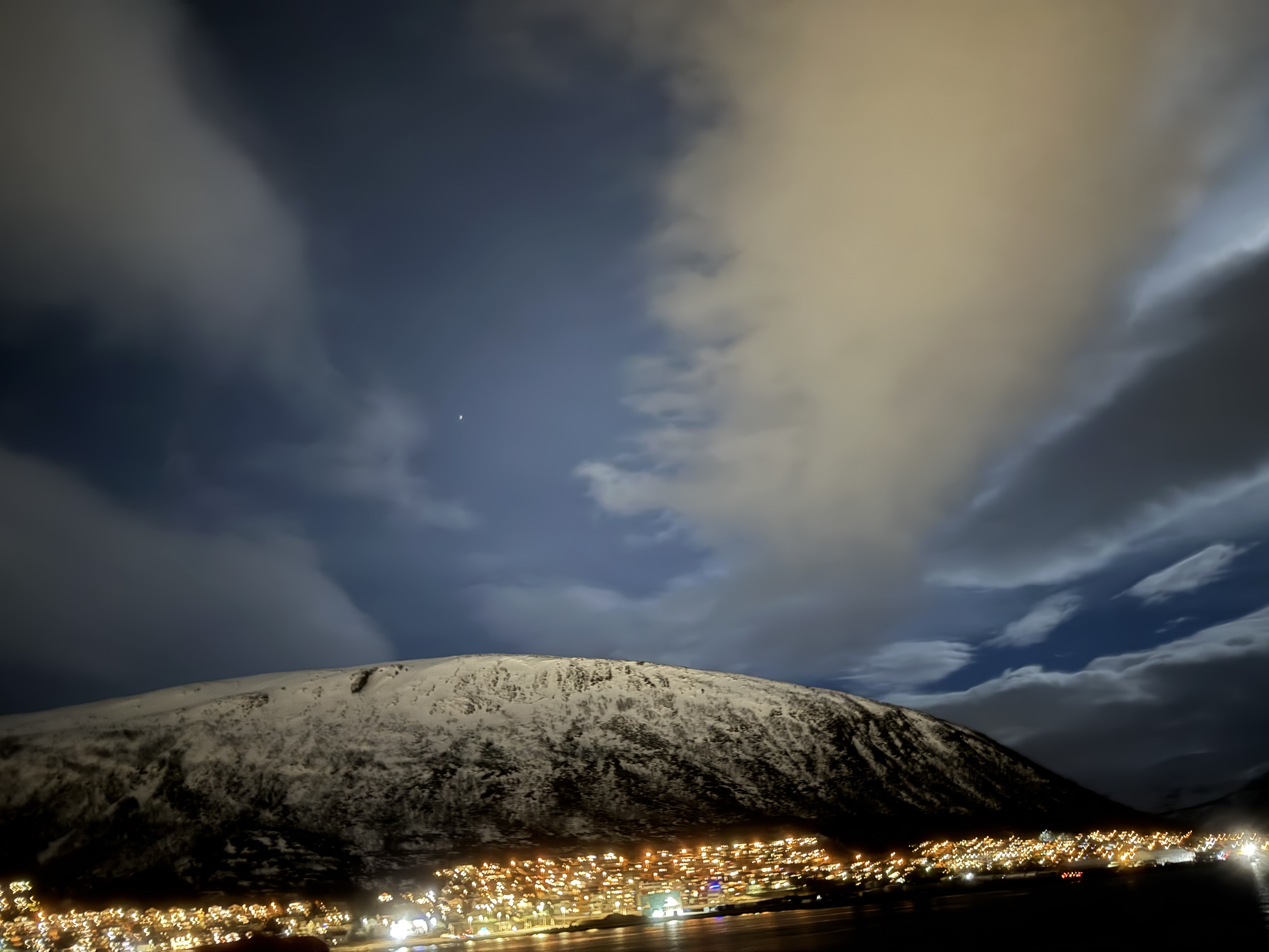 - Incredible evening aurora trip (starting out with a vue panoramique at Skulsfjord while the sun set, then the best display at Lyfjord); thanks Sun, the lights were literally even visible while the sun was up