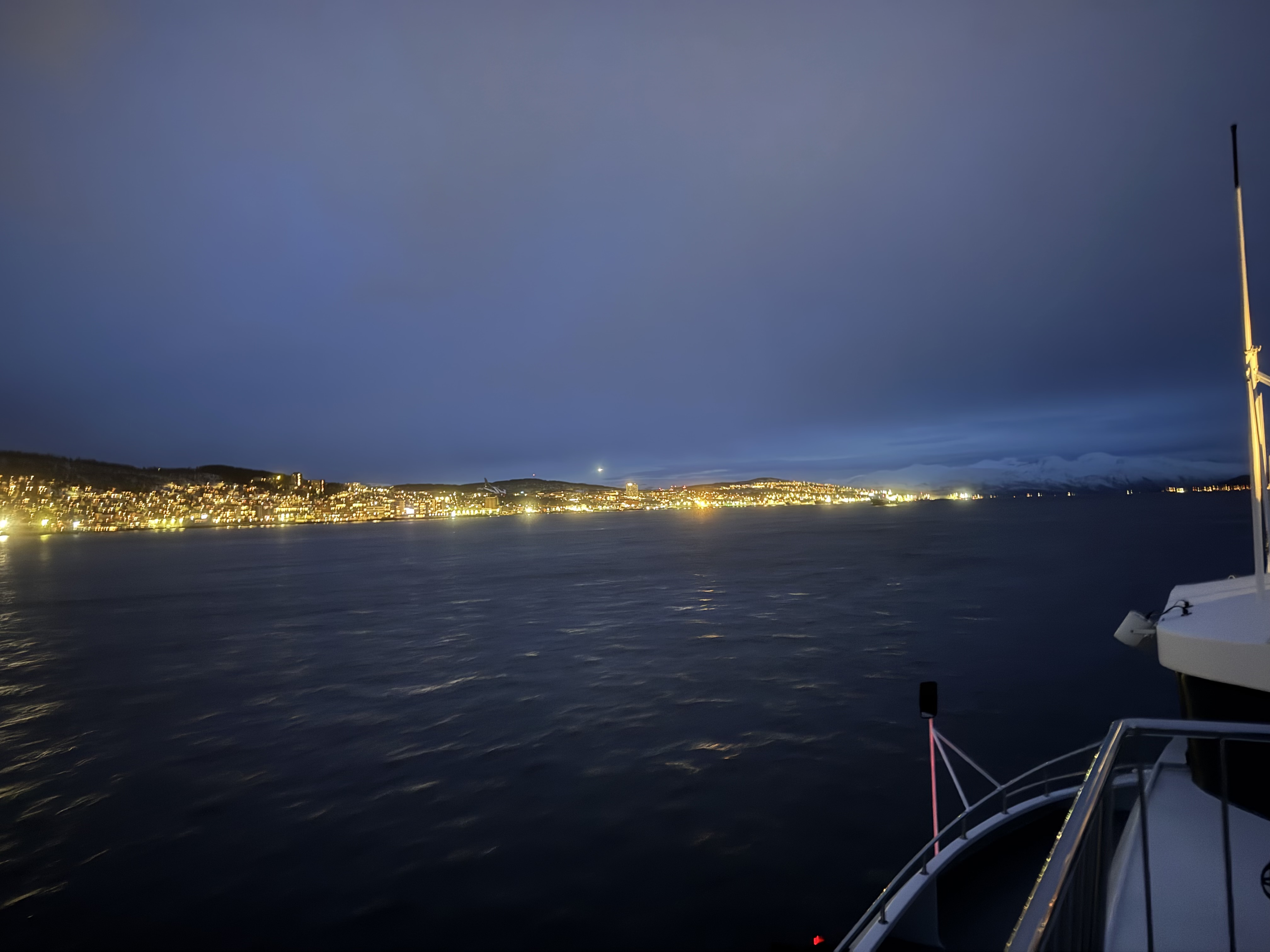 - Evening boat trip which was so cloudy you couldn’t even see the Moon, never mind the Northern Lights, although it was quite atmospheric in places